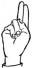 На ћирилици написано РАДНА АНИЧИЋ састоји се из 11 слова [?]. Исписано ћириличном једноручном азбуком за глувонеме: